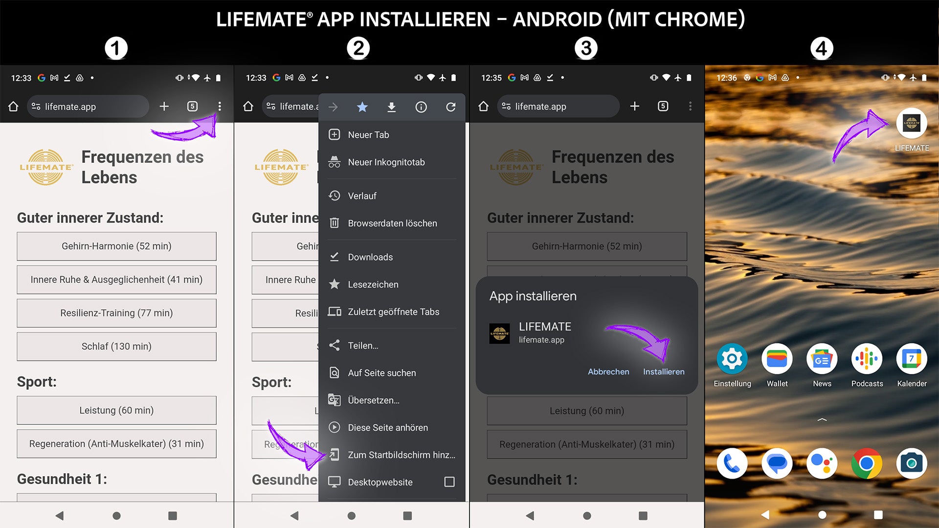Wenn Du ein Android-Smartphone hast, kannst Du die LIFEMATE® App nach dem Öffnen über den QR-Code für den schnellen und einfachen Zugriff wie hier abgebildet installieren.