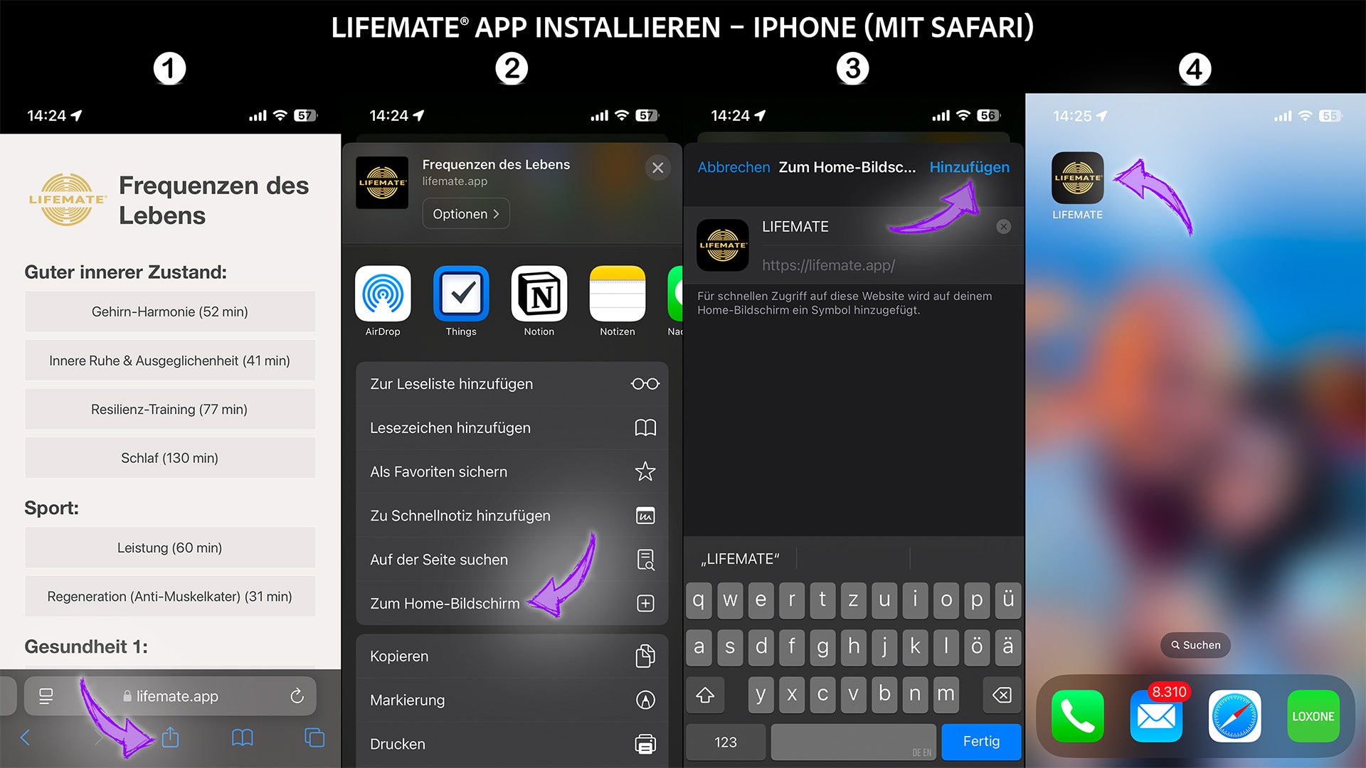 Wenn Du ein iPhone hast, kannst Du die LIFEMATE® App nach dem Öffnen über den QR-Code für den schnellen und einfachen Zugriff wie hier abgebildet installieren.